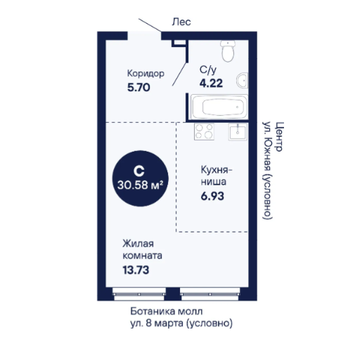 Студия, 30.58 м², 4/25 этаж