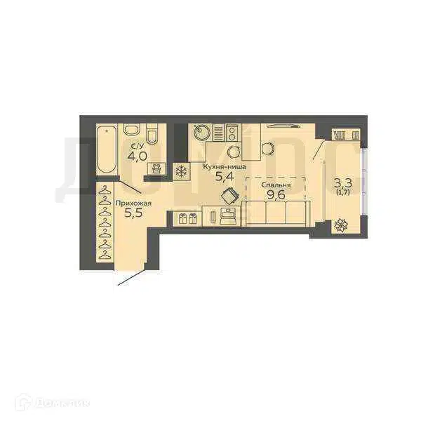 1-комн. кв., 27.6 м², 8/9 этаж