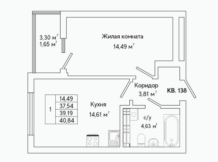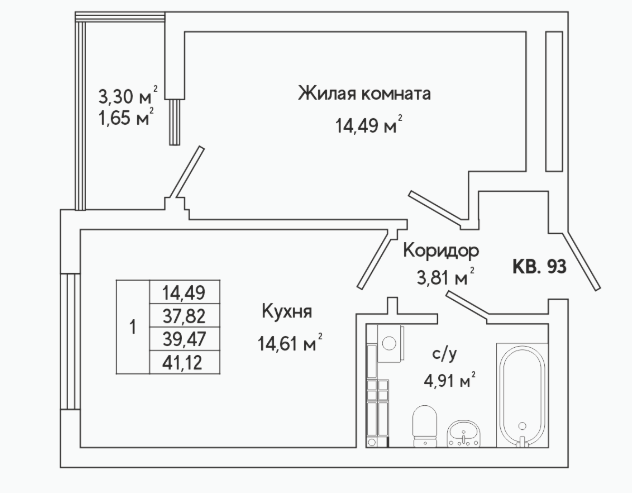 1-комн. кв., 39.2 м², 15/25 этаж