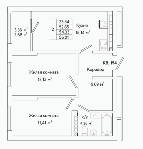 2-комн. кв., 56 м², 17/25 этаж