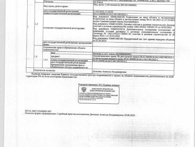 Должник: Сулейманов А.Я., Собственник: Сулейманов А.Я. Лот: Жилое помещение (квартира), площадь 22,3 кв.м., кадастровый номер: 66:41:0609018:2412, г. Екатеринбург, ул. Латвийская, д. 58/2, кв. 244, (зарегистрированные лица - 2 взрослых), н/ц: 1567400 р, з-к: 1567 р, код: 0014, рег. 05-1680/2025