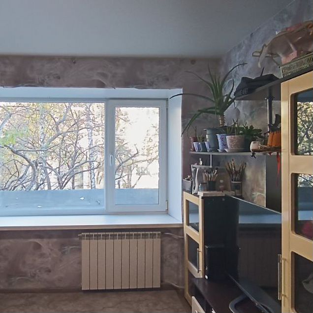 Квартира светлая, в комнате два окна, очень теплая, чистенькая, с косметическим ремонтом, остается вся мебель и техника, заезжай и живи.
