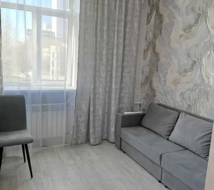 Студия 19.8 кв. М. Со всем интерьером, который вы видите на фото. От штор на окнах до ложки на кухне — всё остается новому владельцу.