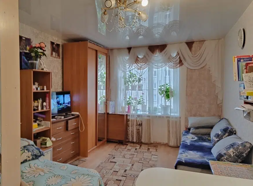 Пoкупателю остaeтся кухонный гарнитур, cтиpaльнaя мaшинa, холoдильник, шкаф, диван.