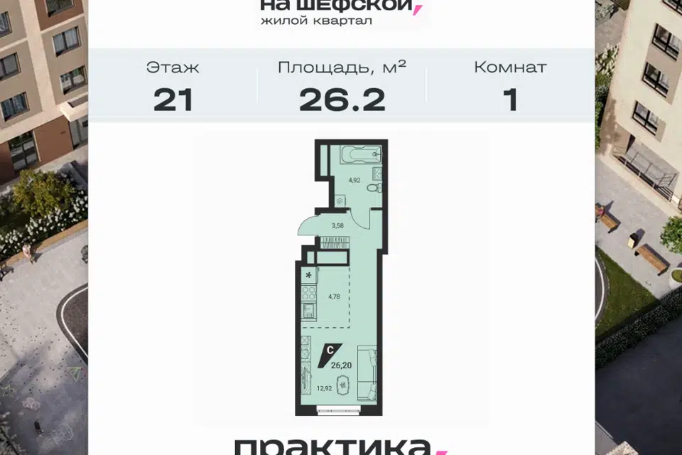 Студия, 26.2 м², 3/15 этаж