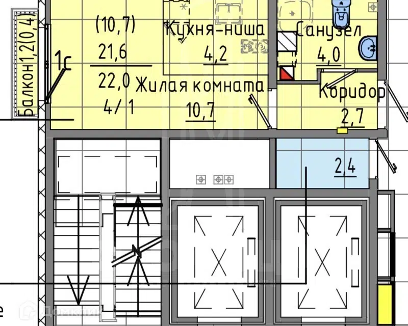 2-комн. кв., 41.3 м², 1/4 этаж