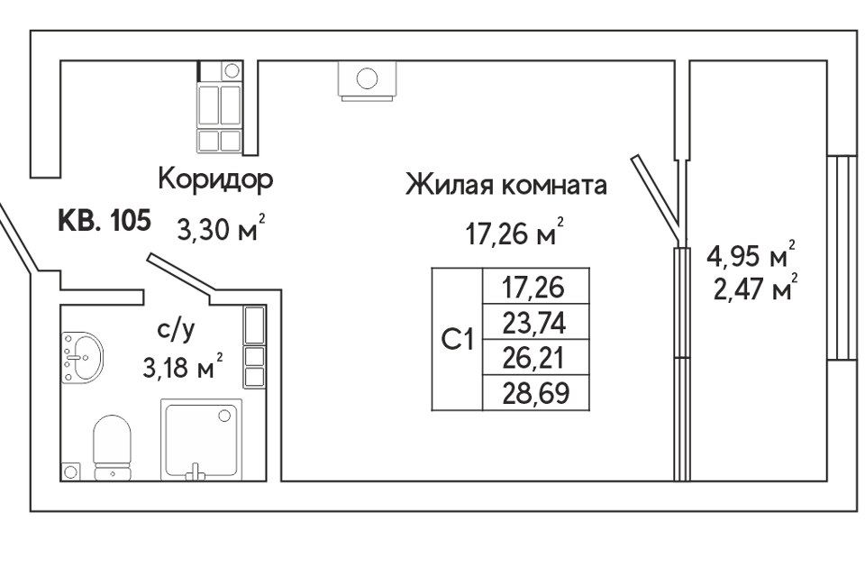 Студия, 26.8 м², 3/26 этаж
