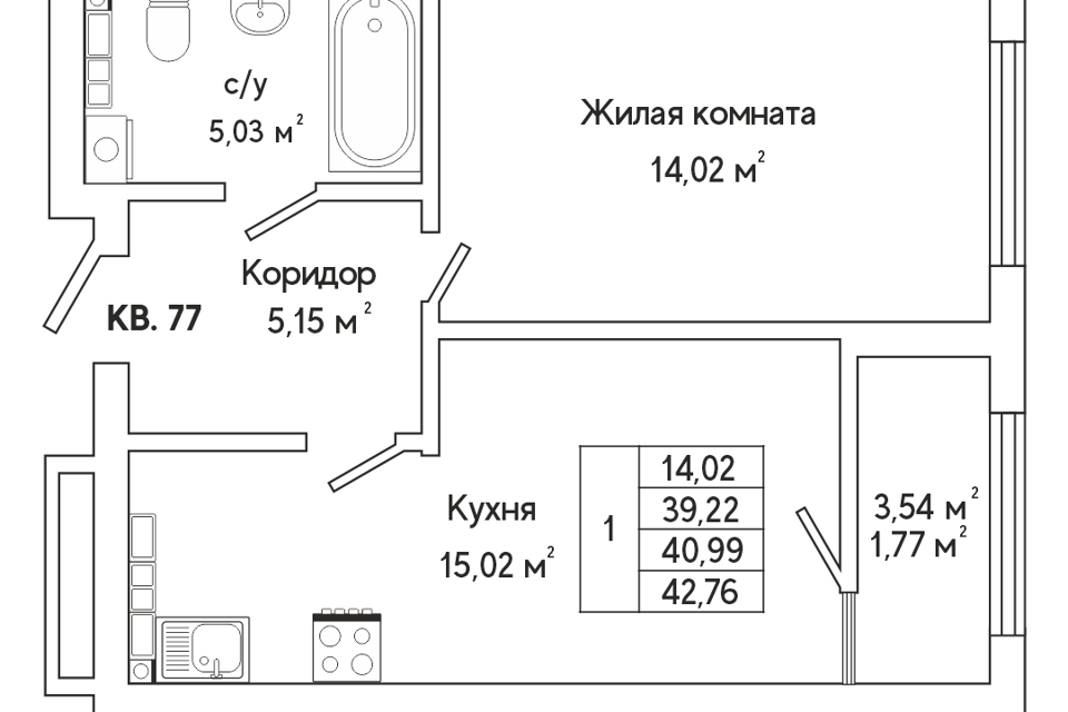 1-комн. кв., 39.5 м², 10/25 этаж