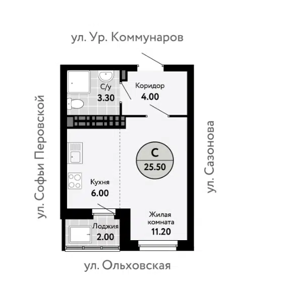 Студия, 25.67 м², 14/16 этаж
