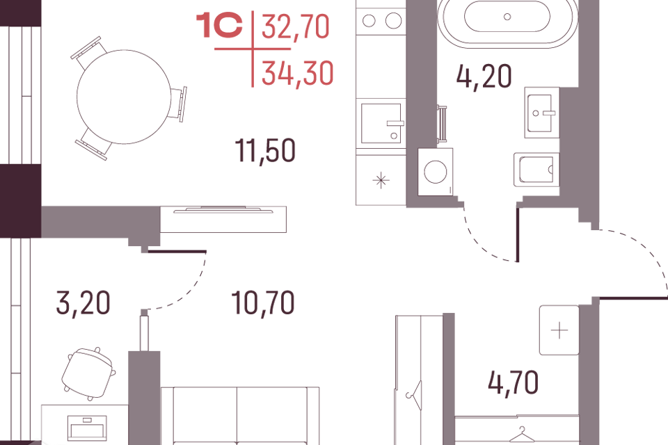 Студия, 34.6 м², 26/26 этаж