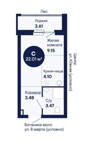 Студия, 22.01 м², 13/25 этаж