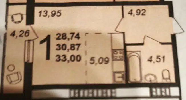 1-комн. кв., 30.1 м², 1/5 этаж