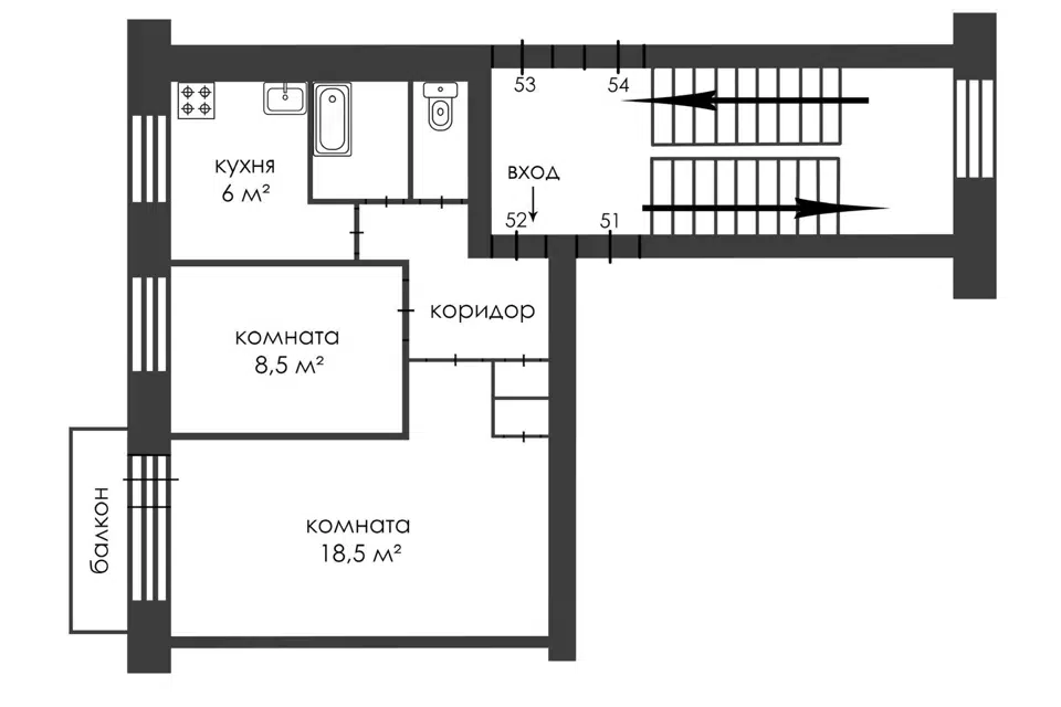 3-комн. кв., 53.5 м², 1/5 этаж