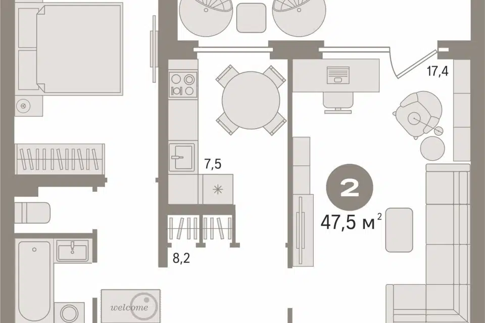 2-комн. кв., 47.5 м², 4/16 этаж