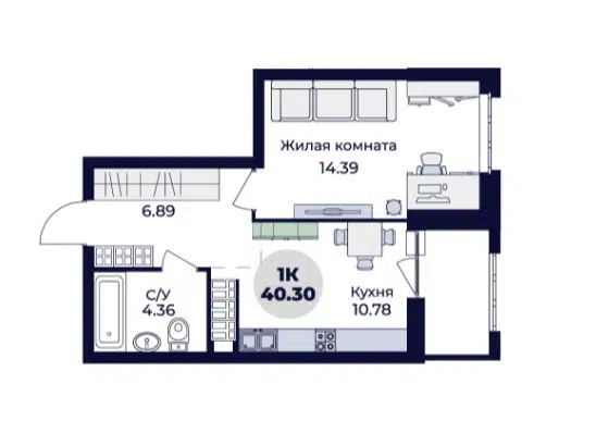 1-комн. кв., 40.2 м², 23/25 этаж