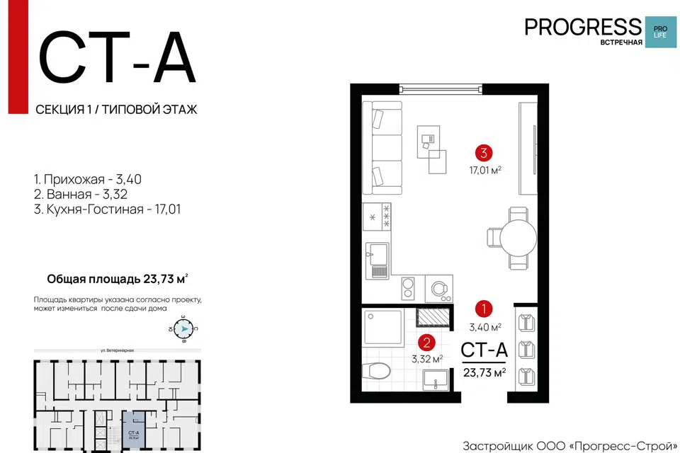 Студия, 25.1 м², 5/5 этаж