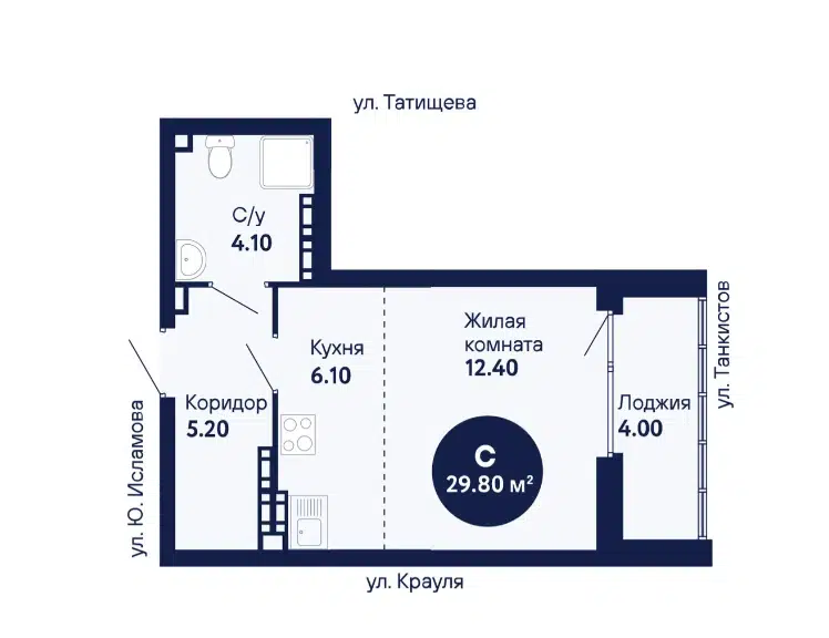 Студия, 30.2 м², 14/21 этаж