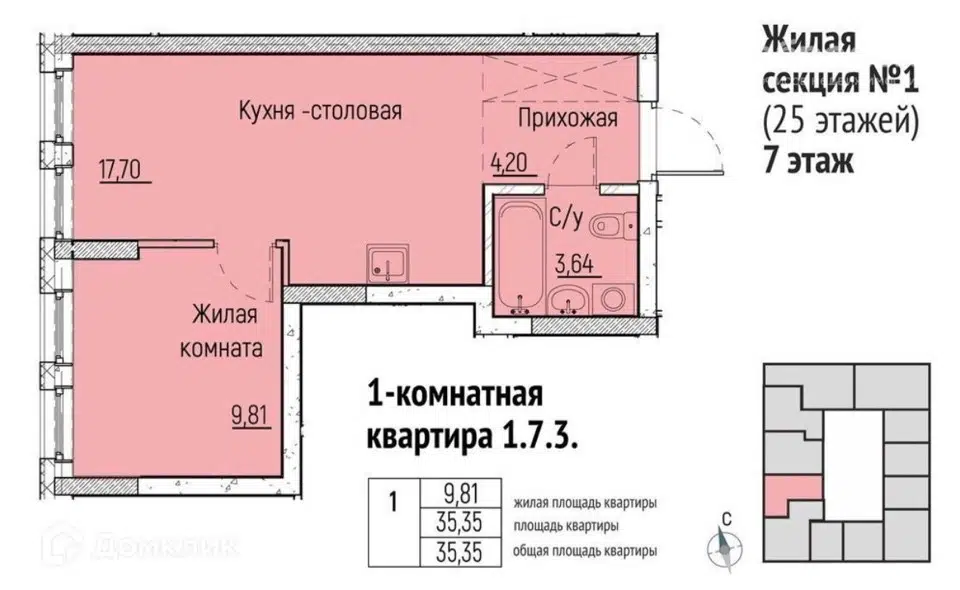 1-комн. кв., 35.8 м², 7/26 этаж