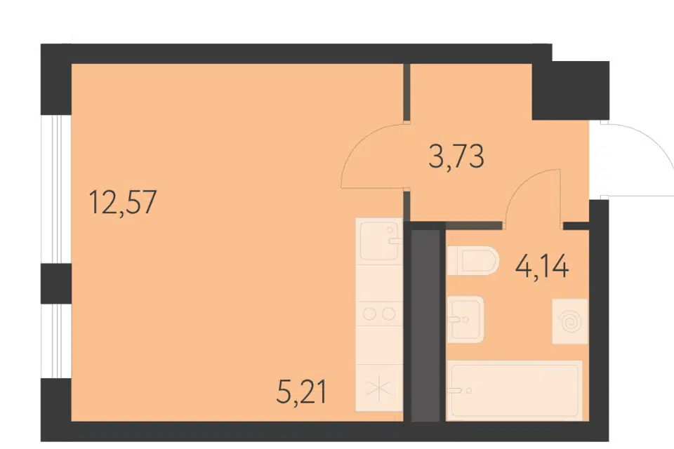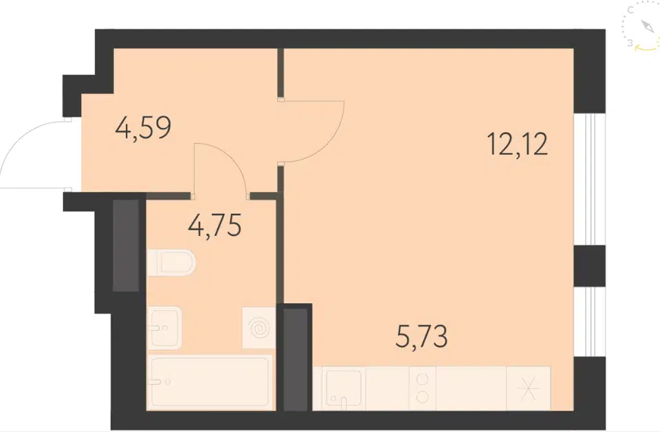 Студия, 25.57 м², 15/16 этаж
