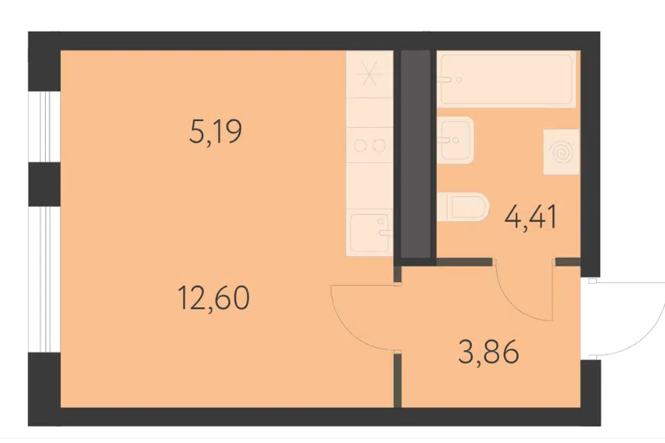 Студия, 25.67 м², 14/16 этаж