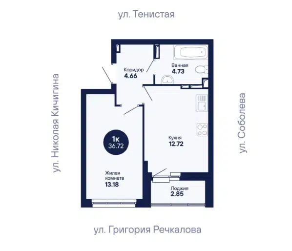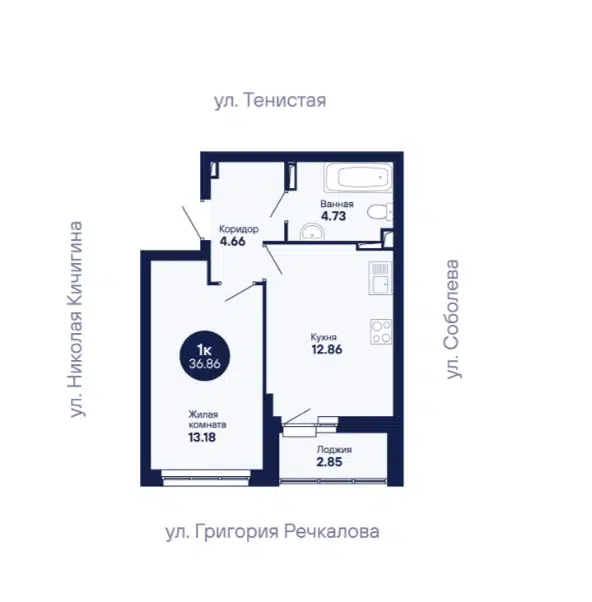 Студия, 23.1 м², 11/13 этаж