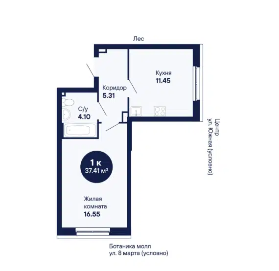 1-комн. кв., 37.41 м², 1/27 этаж