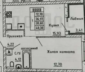 1-комн. кв., 38.3 м², 3/31 этаж