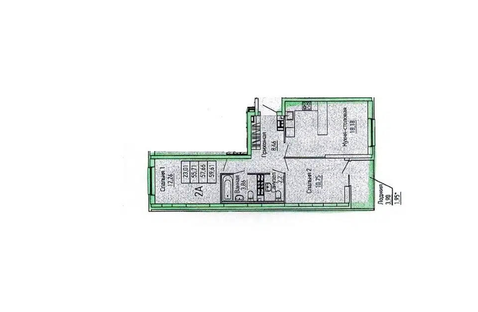 3-комн. кв., 58.1 м², 2/2 этаж
