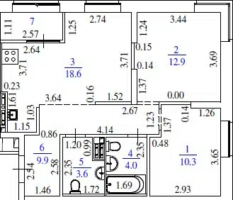 3-комн. кв., 60.7 м², 9/9 этаж