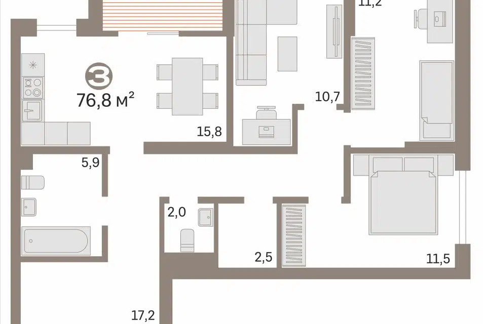 3-комн. кв., 76.8 м², 2/25 этаж