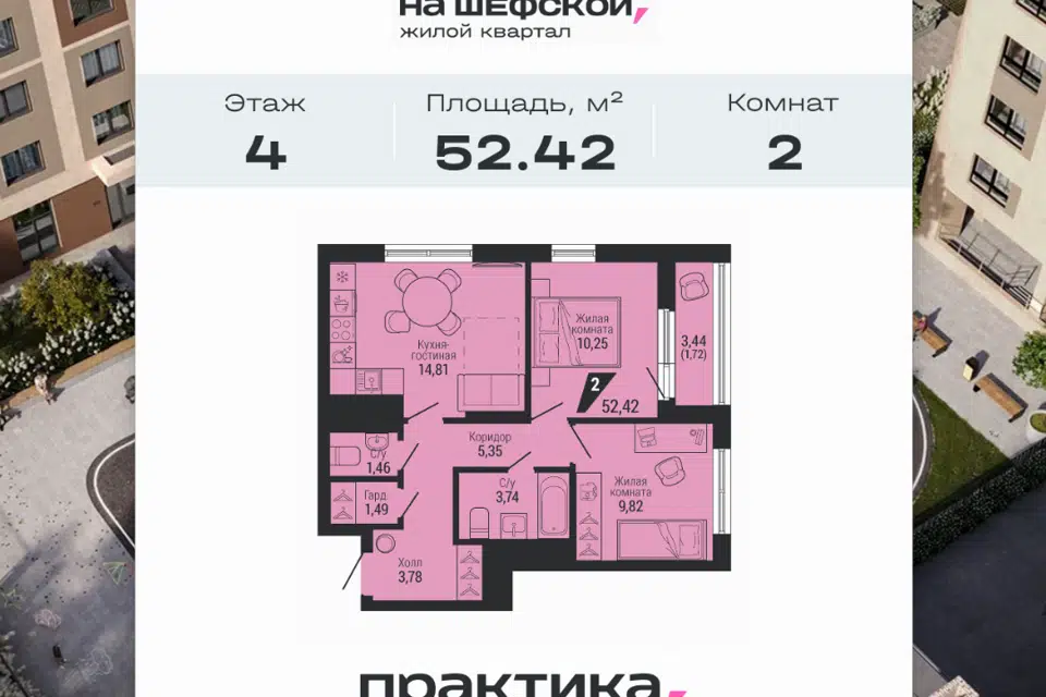 2-комн. кв., 52.3 м², 8/26 этаж