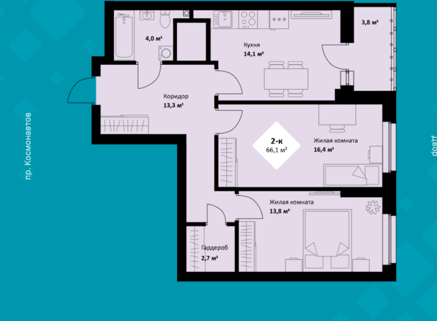 2-комн. кв., 66.2 м², 24/26 этаж