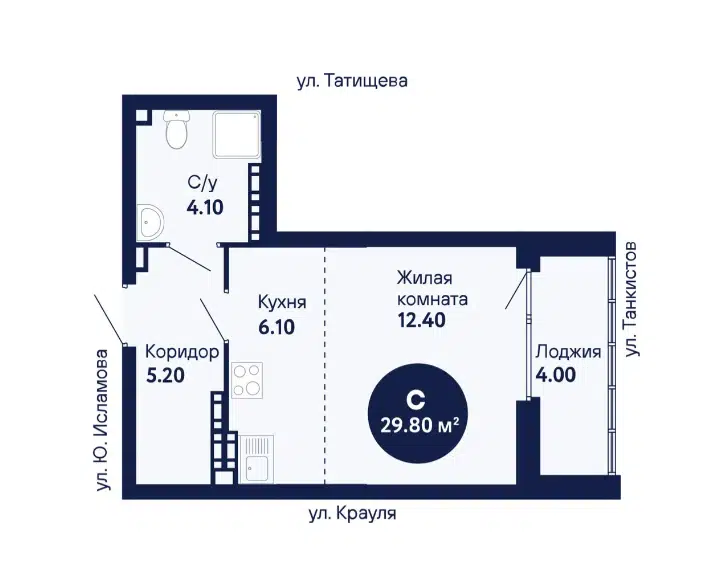 Студия, 30.2 м², 14/22 этаж