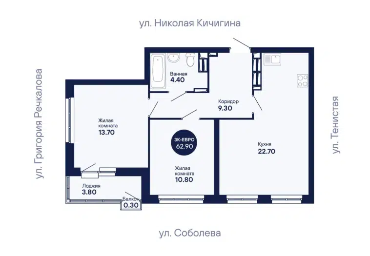 3-комн. кв., 69 м², 3/8 этаж