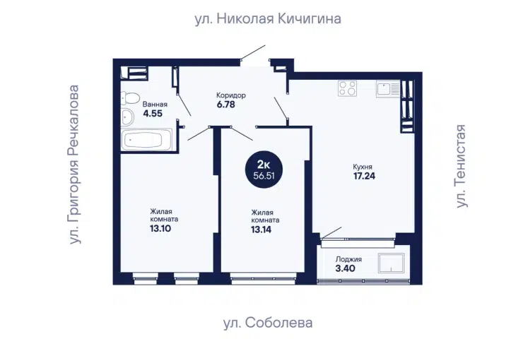 2-комн. кв., 56.51 м², 24/25 этаж