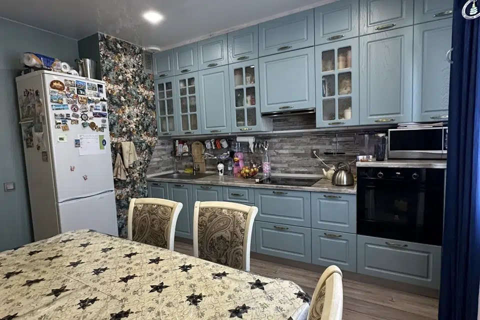 Квартира оснащена всей необходимой мебелью и техникой: кухонный гарнитур, посудомоечная машина, духовой шкаф, варочный поверхность, стол, стулья, диван, кровать с матрасом, шкафы, тумбы,