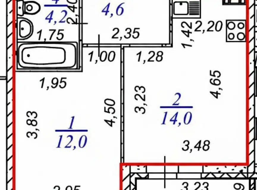 1-комн. кв., 45.9 м², 2/4 этаж