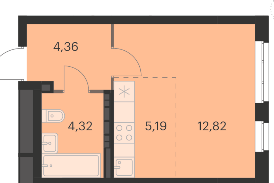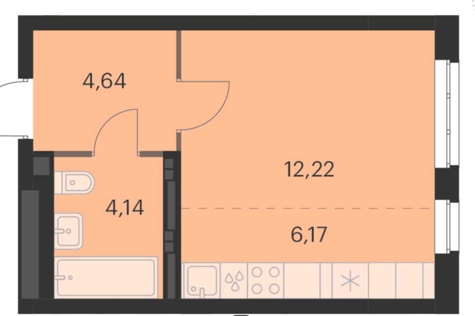 Студия, 26.6 м², 9/13 этаж