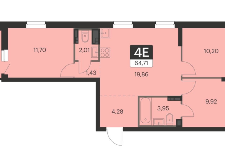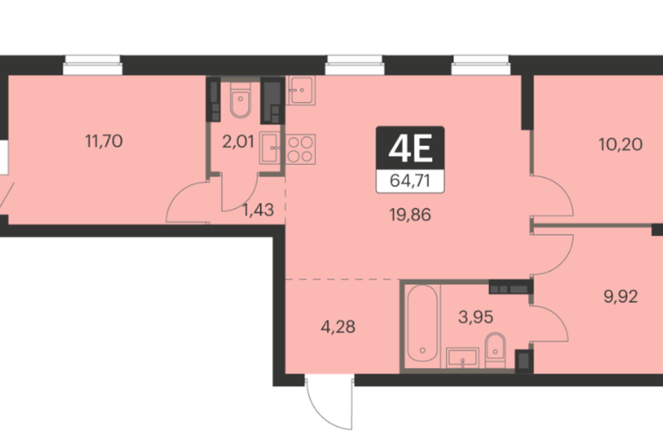 3-комн. кв., 64.2 м², 11/13 этаж