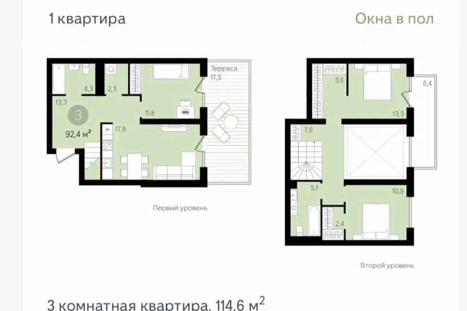 3-комн. кв., 106.6 м², 17/18 этаж