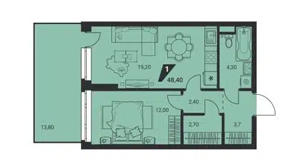 1-комн. кв., 48.4 м², 2/24 этаж