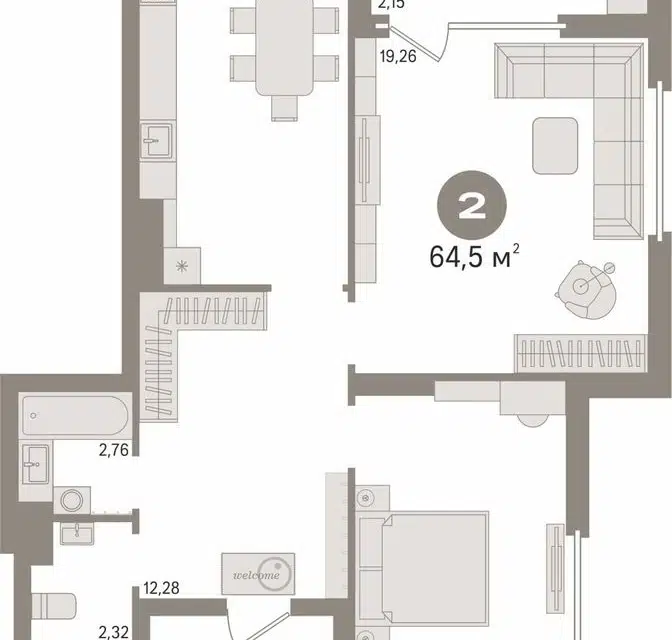 2-комн. кв., 64.5 м², 2/25 этаж