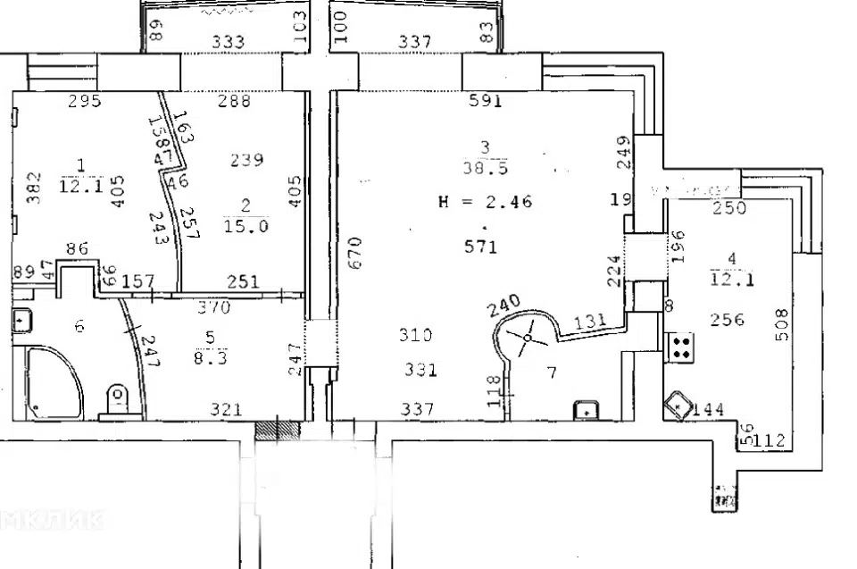 3-комн. кв., 63 м², 7/12 этаж