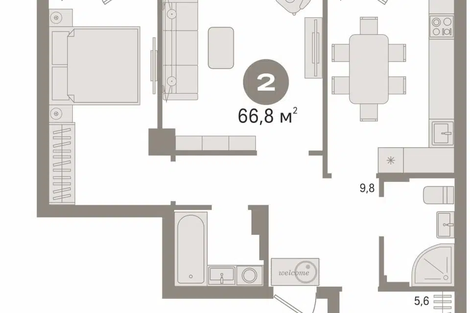 2-комн. кв., 66.8 м², 2/25 этаж