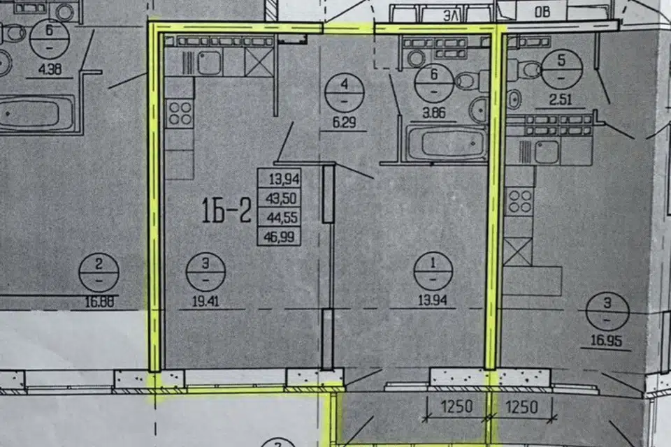 2-комн. кв., 43 м², 1/5 этаж
