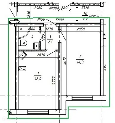 Студия, 16.4 м², 9/12 этаж
