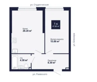 1-комн. кв., 43 м², 7/20 этаж