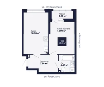 1-комн. кв., 42.91 м², 24/33 этаж