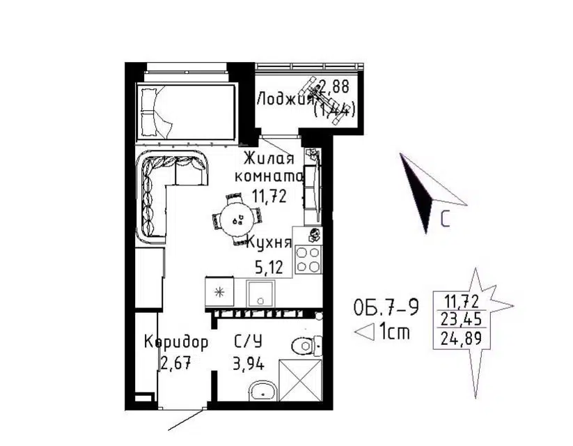 Студия, 24.9 м², 8/11 этаж