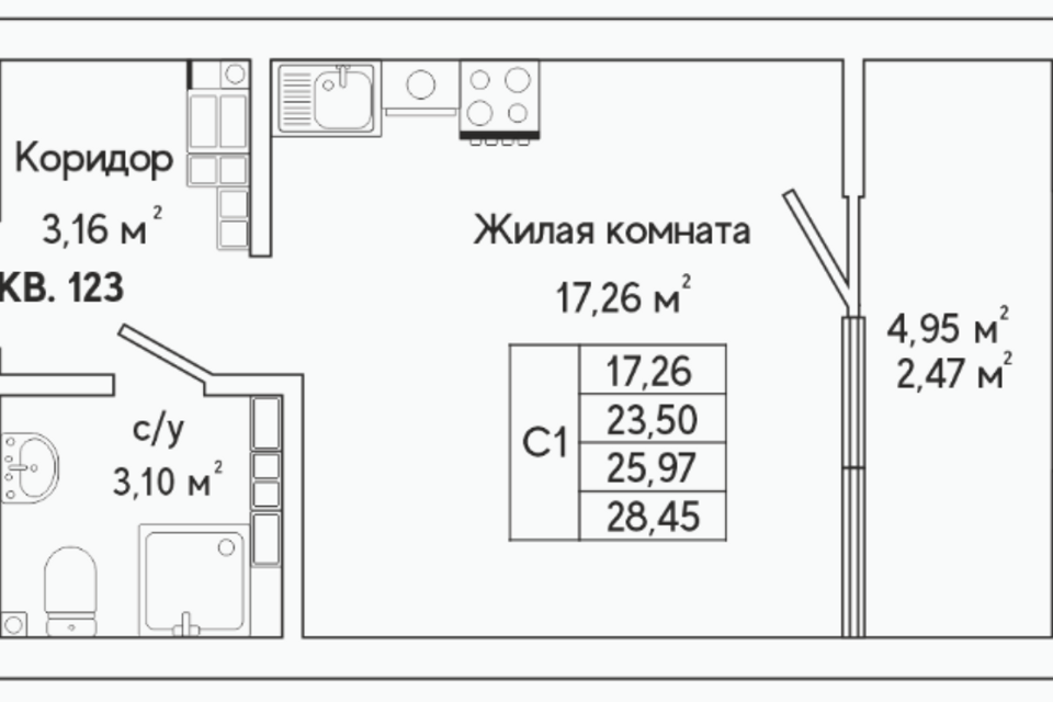 Студия, 28.2 м², 8/25 этаж